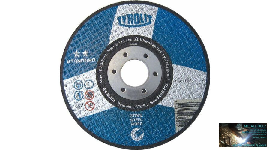 Kategóriák: Acél, Kisgépek, Kertigépek, Szerszámok, Profi Vágás, csiszolás, polírozás, Tyrolit Standard acél vágókorong, Vágás/Csiszolás/Polírozás, Vágókorong 115-230mm-ig, vágókorongok