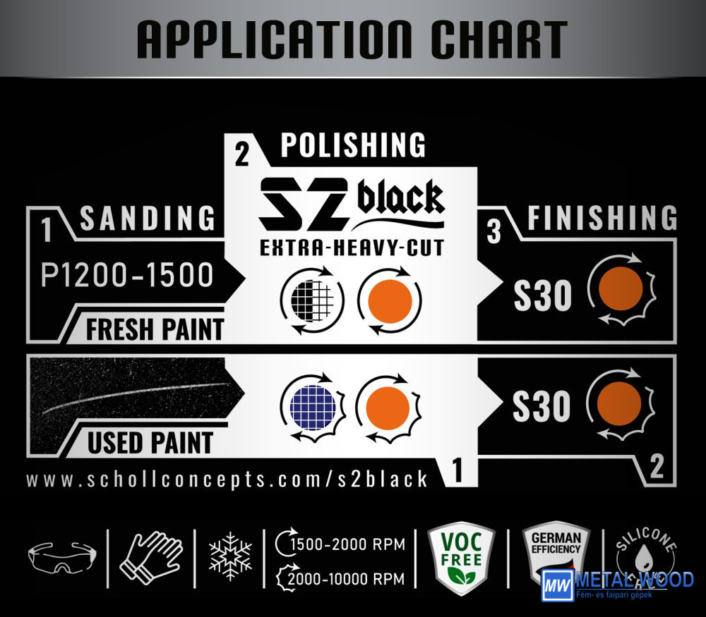 Az S2 BLACK, a prémium, nagy teljesítményű keveréket kifejezetten az igényes részletezők számára fejlesztették ki, és használható elhasznált és időjárásálló fényezési felületeken!