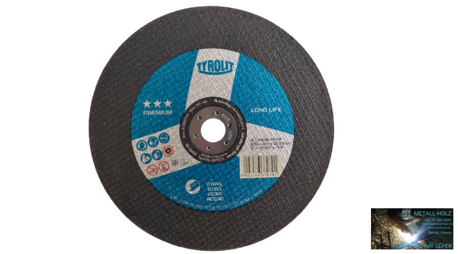 Kategóriák: Acél, Kisgépek, Kertigépek, Szerszámok, Profi Vágás, csiszolás, polírozás, Tyrolit Premium acél vágókorong, Vágás/Csiszolás/Polírozás, Vágókorong 115-230mm-ig, vágókorongok