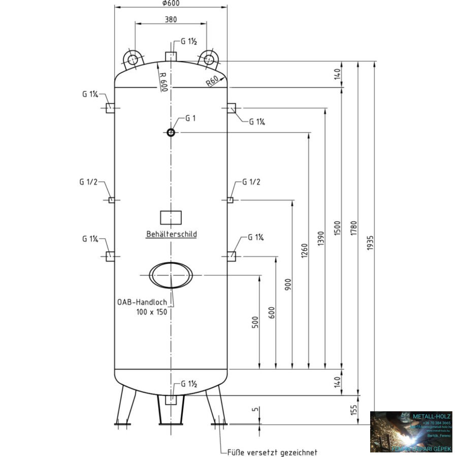 Nyomástartó edény űrtartalma 500l