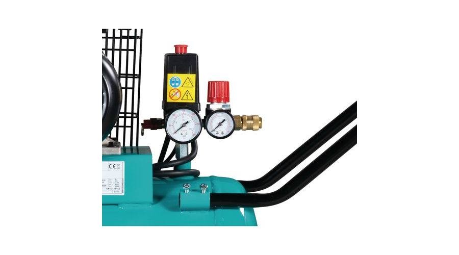 – A sűrített levegőtartály biztonsági szeleppel van felszerelve, tartály-nyomásmérővel és sűrített folyadék leeresztő szeleppel