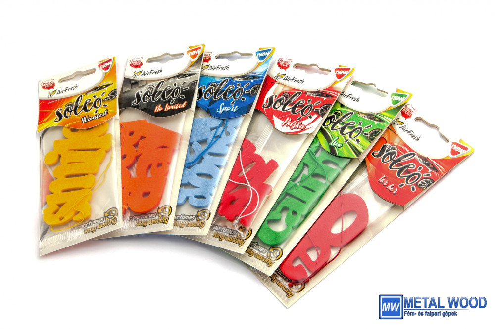 A Soleo illatok kollekciója egyedi filc illatpárnából készült, amelyek kellemes aromával töltik meg az autót, és emellett egyedi dekorációt jelentenek az autó belsejében.
