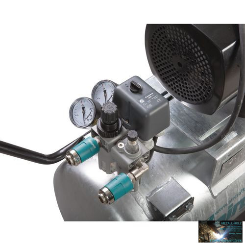 Egy-egy sűrített levegő kimenet a szűrt sűrített levegőhöz, egy szűrt és olajozott sűrített levegőhöz, valamint egy közvetlen kimenet a sűrített levegő tartályon