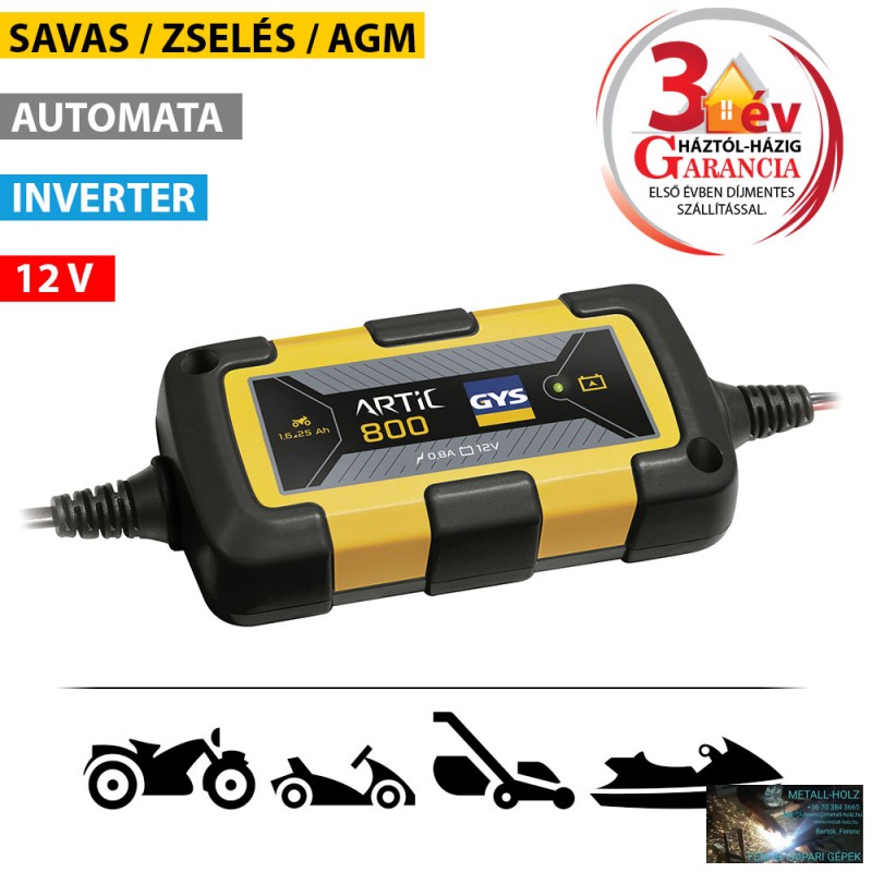 Kifejezetten motorok, jet-skik, kartingok vagy fűnyírók 12V-os akkumulátorának töltésére fejlesztették ki, az ARTIC 800 (0.8 A) mikroprocesszorral ellenőrzött, automata töltést biztosít. Hatékony, kompakt és könnyű, kétszer olyan gyors, felügyelet nélküli töltést garantál, mint egy hagyományos akkumulátortöltő.