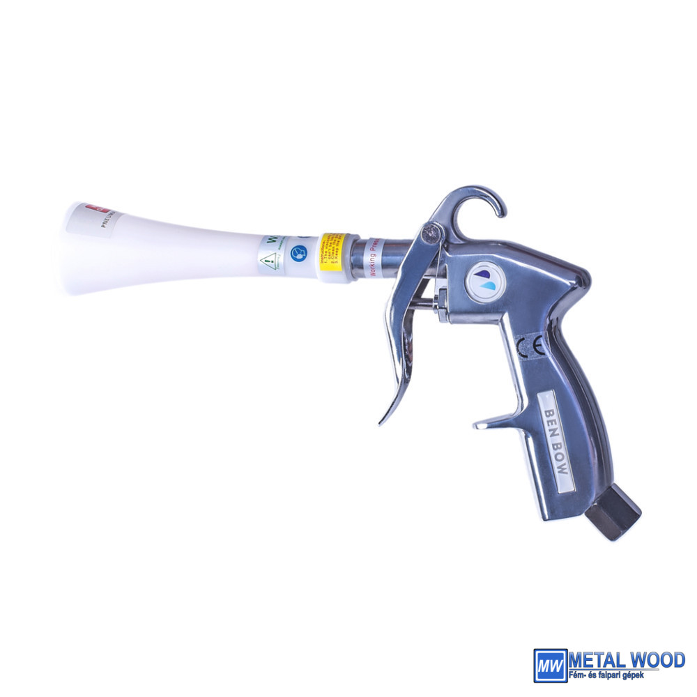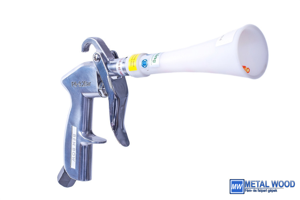 Felépítés – acélt és alumíniumot használtak ennek a fuvatópisztolynak az elkészítéséhez. Függesztő kampóval és hagyományos csatlakozóval rendelkezik a szabványos kompresszortömlőkhöz.