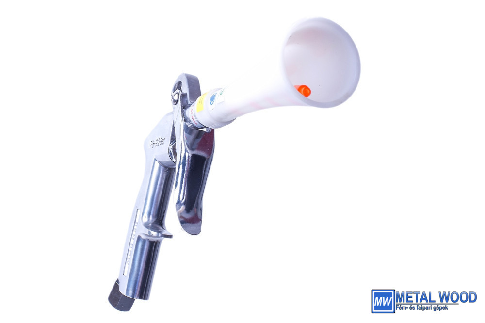 MŰKÖDÉSI MÓDSZER – a fúvópisztoly működési elve egy forgó szilikoncső használata. Sűrített levegővel működik, ami forgásba hozza és örvényhatást kelt. A fúvópisztoly sűrített levegője karcolás nélkül fújja le a szennyeződést a járműről.