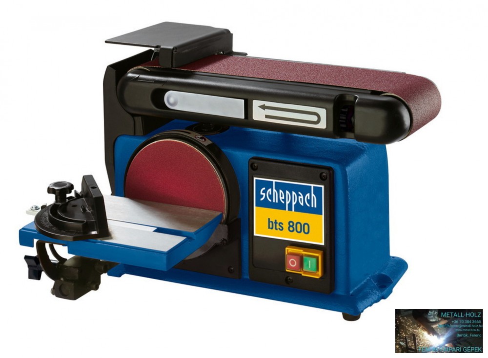 A Scheppach BTS 800 multifunkciós csiszológép, csiszolószalaggal és csiszolókoronggal egyesítve, megoldást jelent minden csiszolási feladatra a műhelyében. Az erős és csendes motor biztosítja a megfelelő teljesítményt. A gép előnyei közé tartozik a variálhatósága. Az egész egység a csiszolószalaggal együtt, 90°-kaldönthető, vízszintes helyzetből függőleges helyzetbe. A kiegészítő, szögmérővel ellátott munkaasztalt, egyrészt 45°-os tartományban le lehet dönteni, másrészt el lehet tolni a gép hátsó oldalához, és így használható a szalagcsiszolásnál is. A csiszolókorong tépőzár segítségével egyszerűen rögzíthető. Az egész gép felépítménye öntvényből készül, amely biztosítja a kiváló stabilitást, függetlenül attól, hogy a gép csiszolás során milyen nyomásnak van kitéve. A végeredmény mindig kiváló. A gép porelszívó csonkkal rendelkezik, és rögzíthető a munkaasztalhoz.