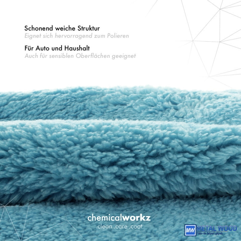 A ChemicalWorkz törlőkendők minden feladatnál fényes eredményt adnak. Újrafelhasználható, mosógépben mosható és környezetbarát. Tökéletes a külső felületek tisztítására vagy a szennyeződés eltávolítására a jármű belsejéből. Minden ChemicalWorkz törlőkendőt visszazárható, környezetbarát cipzáras tasakban szállítjuk. – A kendője mindig hűségesen védve van az olyan külső hatásoktól, mint a szennyeződés, nedvesség, por és még az erős UV sugárzás is.