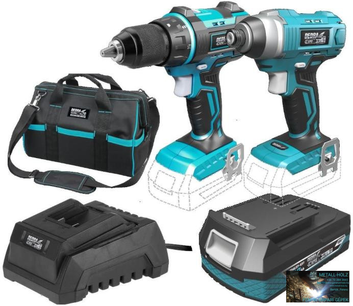Dedra akkumulátoros fúrógép + csavarozó 18 V készlet (akku + töltő + táska)