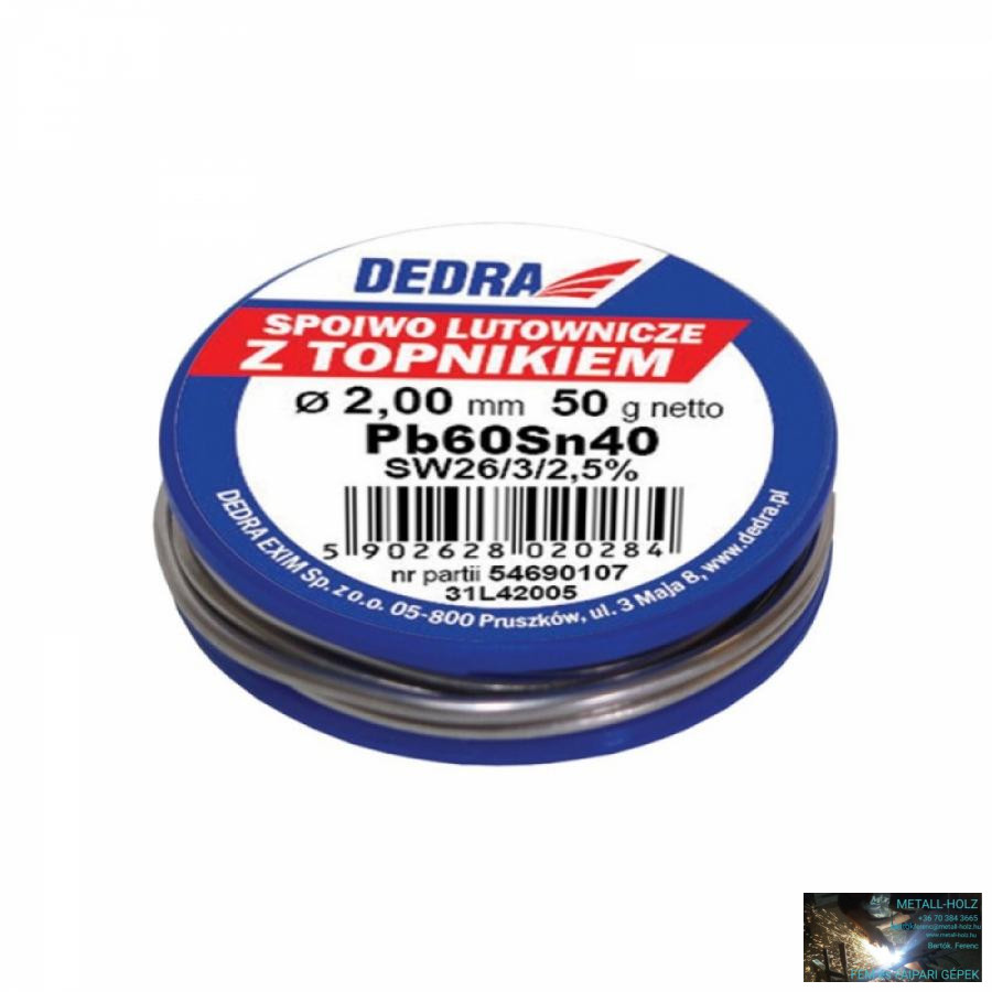 Forrasztódrót folyasztószerrel, 2.0mm, 50g, 40%SN, Pb60Sn40