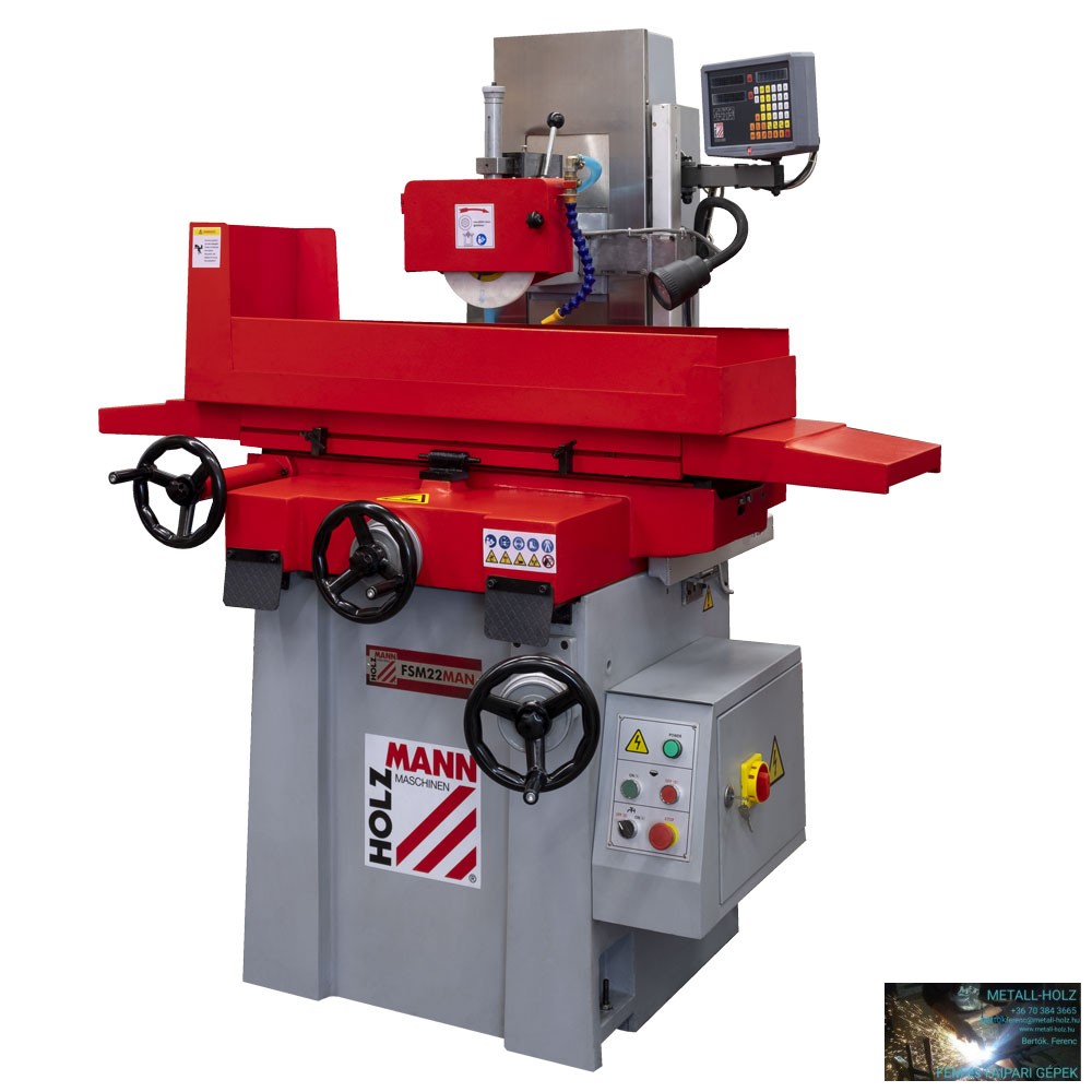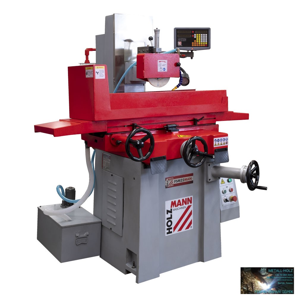 köszörűkorong (Ø200 x 13 mm, fehér korund 46), hűtőfolyadék-szivattyú + tartály, segédeszközök a kerékcsiszoláshoz (tengely, állvány), szerszámok, 2-tengelyes DRO; LED munkalámpa