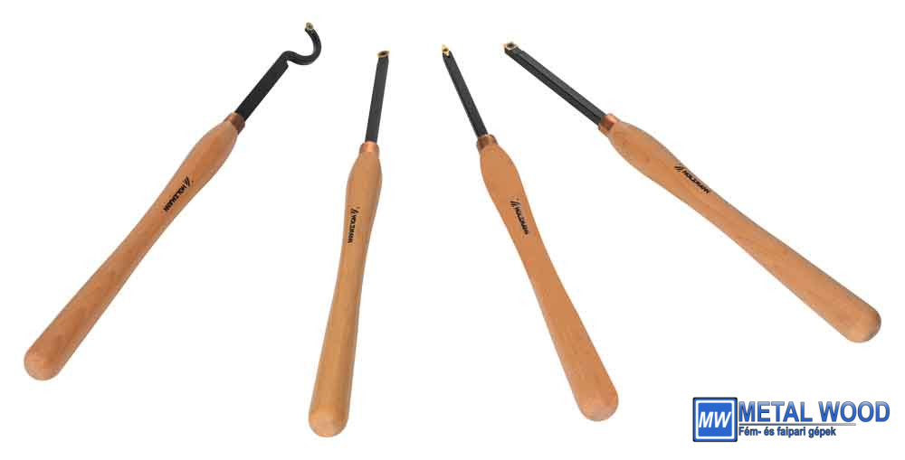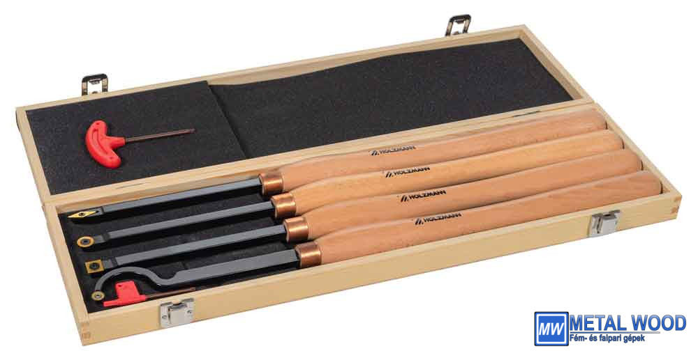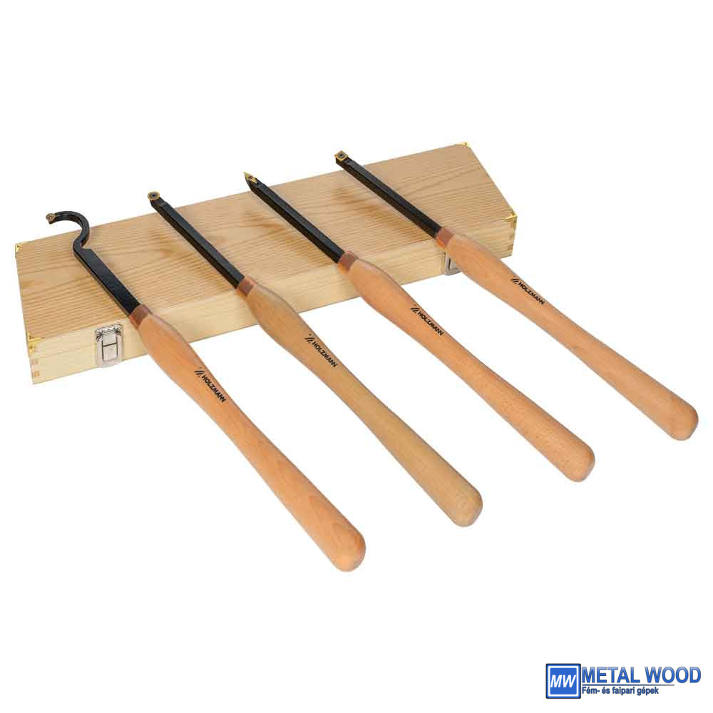 A HOLZMANN 4 részes faesztergavas készlet (XL méretű) cserélhető HM vágólapokkal ideális a faesztergálási munkákhoz. A készlet egy faesztergaszerszámból áll, négyzet alakú vágólappal, egy vágólapból kerek vágólappal (egyenes/kampós szár) és egy rombusz alakú vágólappal.