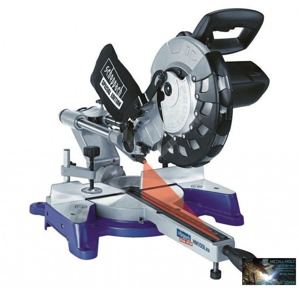 HM 100 LXU gérvágó fűrész kiváló segítséget nyújt az otthoni műhelyben és az építkezéseken is. A Scheppach gérvágók új generációjának tagja, kategóriájában csúcsterméknek minősül. Kemény és puhafák, faprofilok és műanyagok pontos vágására tervezték. Nagyon masszív, de könnyű alumíniumötvözetből készül, így egyszerűen hordozható. Ezen anyagtípusnál szintén fontos tényező a hosszú élettartam és ellenállása az extrém körülményeknek is. Előnyei közé tartozik a nagyon erős 2 400 W motor, húzófunkcióval és a 254 mm átmerőjű fűrészlap, melynek köszönhetően a gép 78 mm magassági és 340 mm széllességi tartományban vág. A fűrészlap kiváló anyagból készül, 60 keményfémlapkás foggal rendelkezik, mely nagyon pontos és sima vágást biztosít. A lézersugár elősegíti a precíz vágást és a fűrészlapvédő biztosítja a kezelőszemély maximális biztonságát