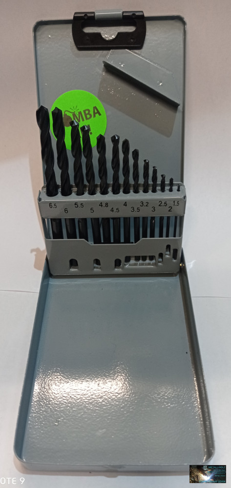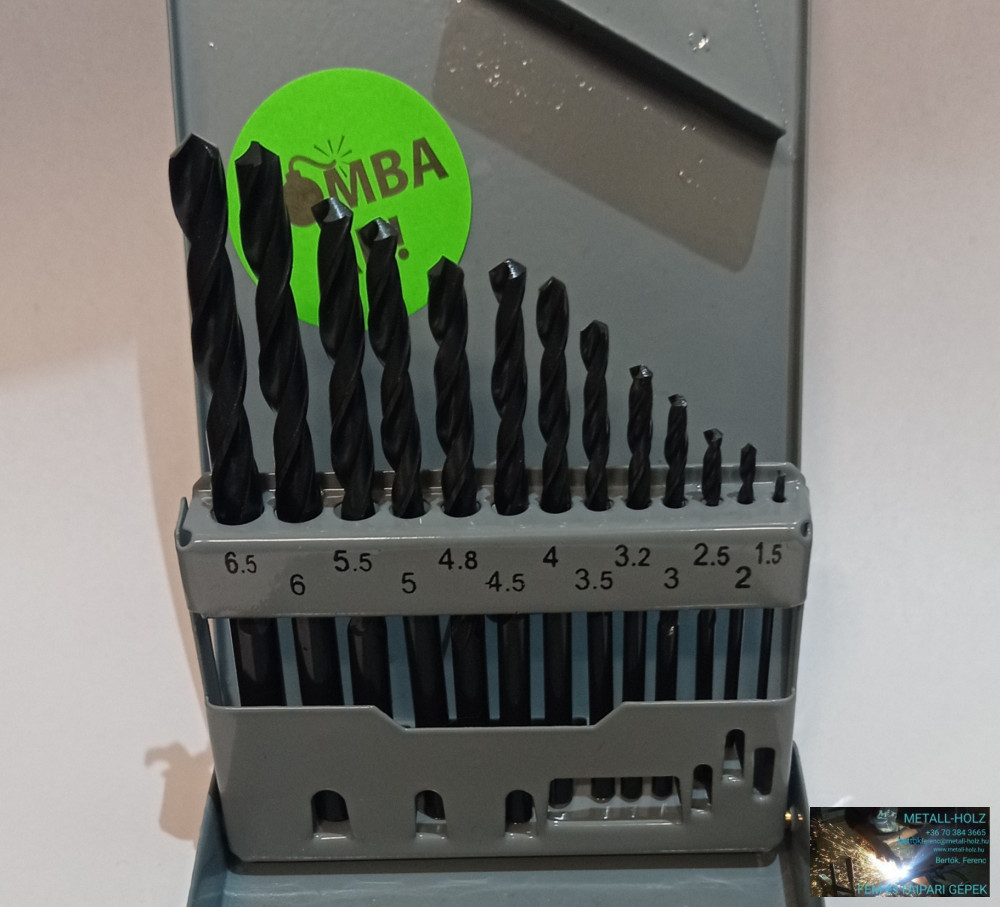 HSS fúrókészlet, 13darabos 1,5mm-6,5mm ig fém tároló dobozban