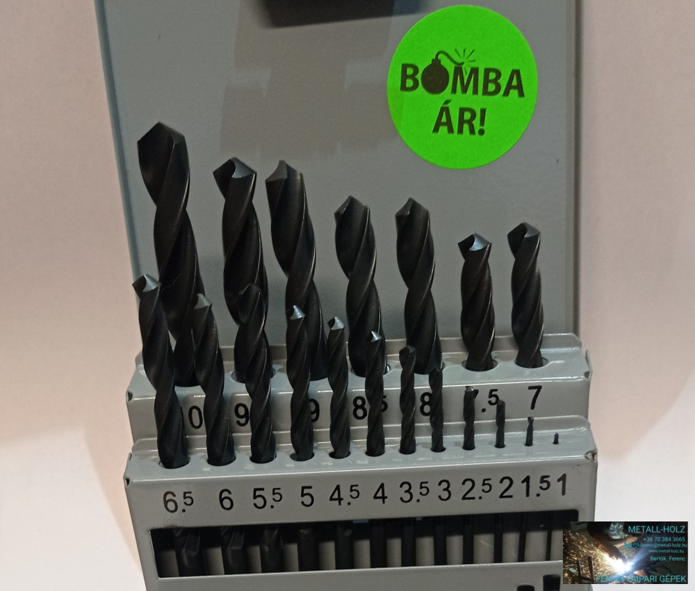 HSS fúrókészlet, 19darabos 1,0mm-10mm ig fém tároló dobozban