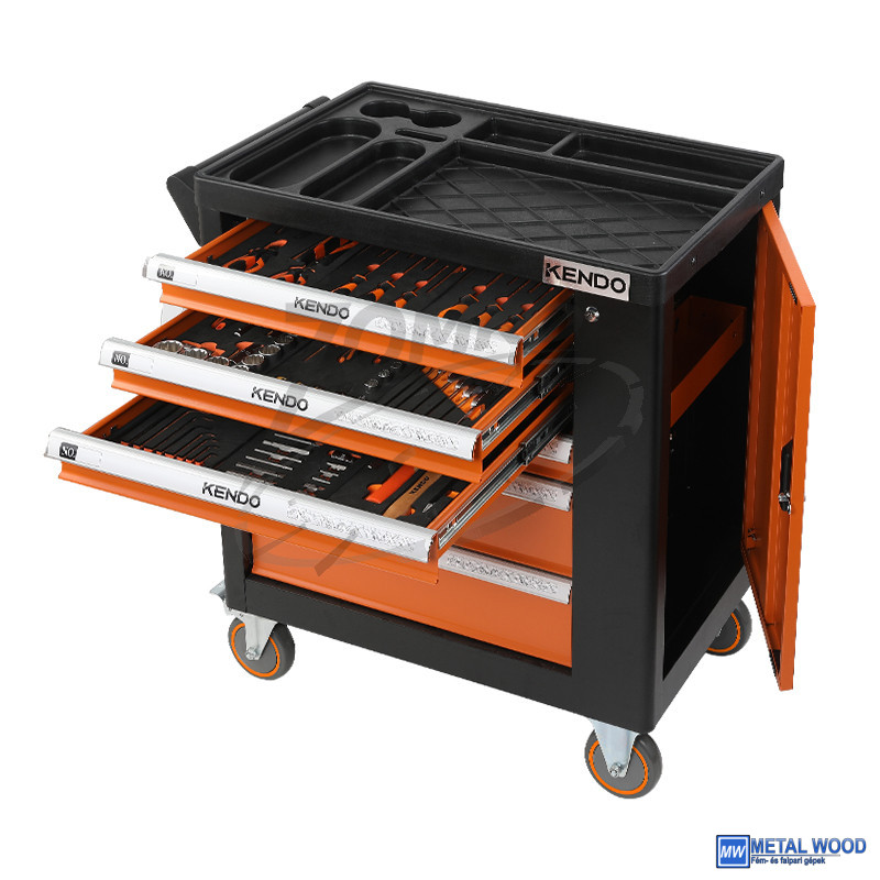KENDO szerszámkocsi 6 fiókos + 144r. szerszám klt. No.90335