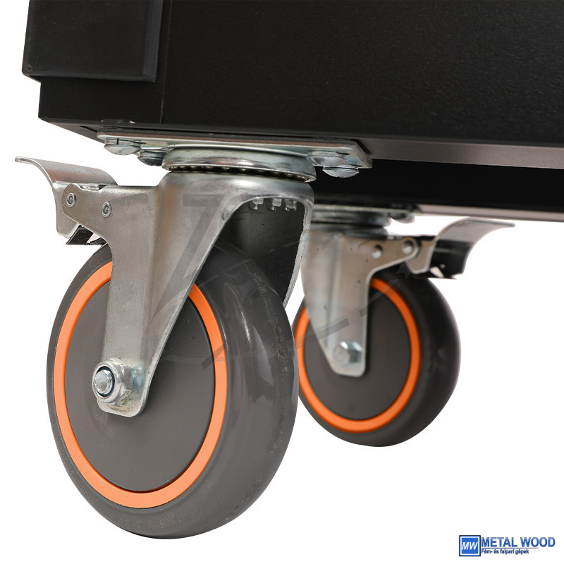 • Nagy teherbírású, fékezhető, csapágyazott kerekekkel ellátva