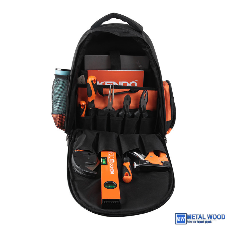 • 6 belső zseb és egy kivehető 15 zsebes szerszámpelenka a fő rekeszben, laptop, notebook, szerszám tárolására