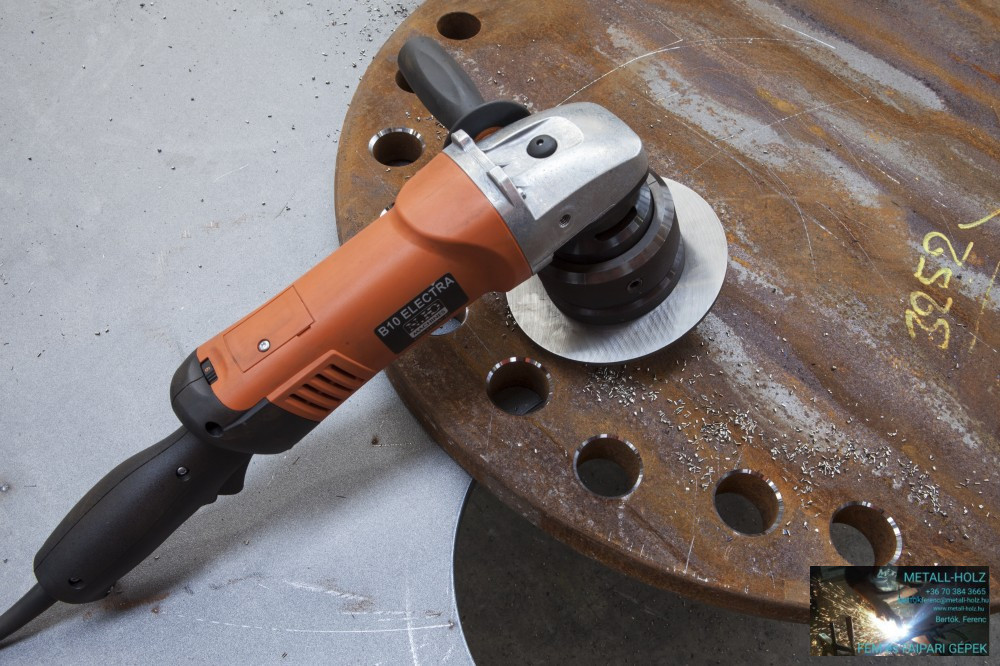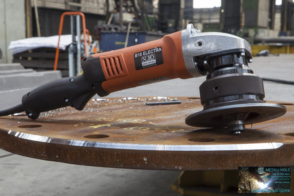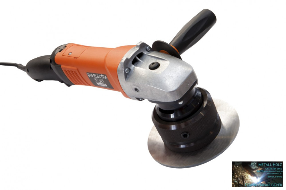 A B10 ELECTRA egy nagy teherbírású kézi élmarógép ami 6db keményfém lapkával szerelt marófejet használ a megfelelő élszög lemarásához.