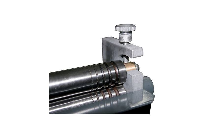 3 hengeres mini lemezhengerítő kisebb munkadarabok készítéséhez. Az állító henger két oldala külön szabályozható, így kúpos formák is készíthetőek. A hengereken hornyok vannak köracél, cső hajlításához.