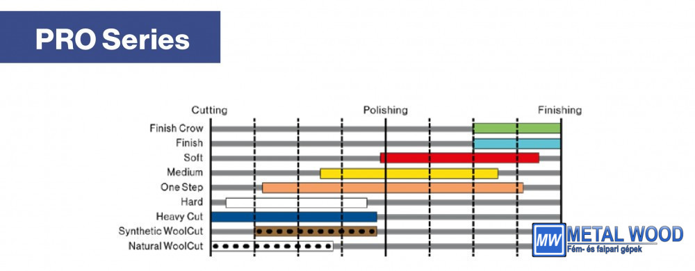 Rövid szintetikus szőrrel, kemény hab talppal. Az alkalmazott szövés nagyon jó vágási tulajdonságokat biztosít, miközben tökéletes felületet hoz létre. A szintetikus szőr megszünteti az eltömődést a munka során. Forgógépekhez készült termék.