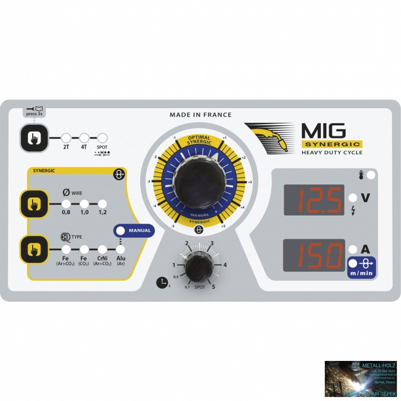 Synergic Mód: A mikroprocesszor által irányítva, a hegesztőgép automatikusan választja ki az optimális huzalsebességet. Válassza ki a(z):