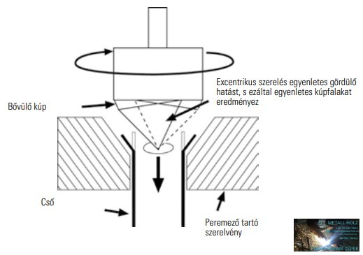 • A tűcsapágyakban excentrikusan szerelt, edzett acél tágító kúp gördülő hatást kelt a fém egyenletes folyása érdekében, egyenletes kúpfalakat ad, berágódás nélkül.