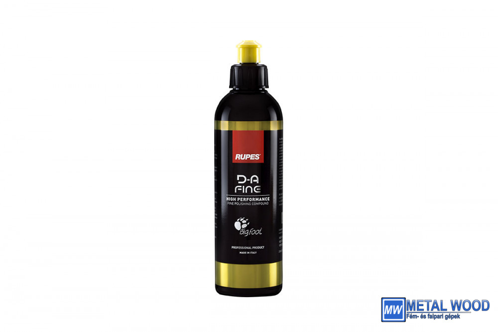 A RUPES D-A FINE kiterjedt tesztelés eredménye egy olyan finom polírozás kifejlesztése érdekében, amely egyesíti az észrevehető vágási teljesítményt a lenyűgöző felületkezeléssel. A RUPES által házon belül kifejlesztett és kevert szabadalmaztatott formula Dual Action polírozókkal való működésre készült, beleértve a nagy löketű véletlenszerű orbitális és fogaskerék-hajtású szerszámokat is. A RUPES sárga hab-, gyapjú- és mikroszálas betétekhez színkoordinált DA-FINE kiváló hibaeltávolítást, hihetetlenül jó felületi minőséget és rendkívül egyszerű letörlést biztosít a kiváló felhasználói élmény érdekében. A DA-FINE a tökéletes második polírozási lépést jelenti a DA-COARSE után gyakorlatilag minden festett, gelcoat vagy lakkozott felületen, vagy önálló megoldásként könnyű polírozási igényekre.