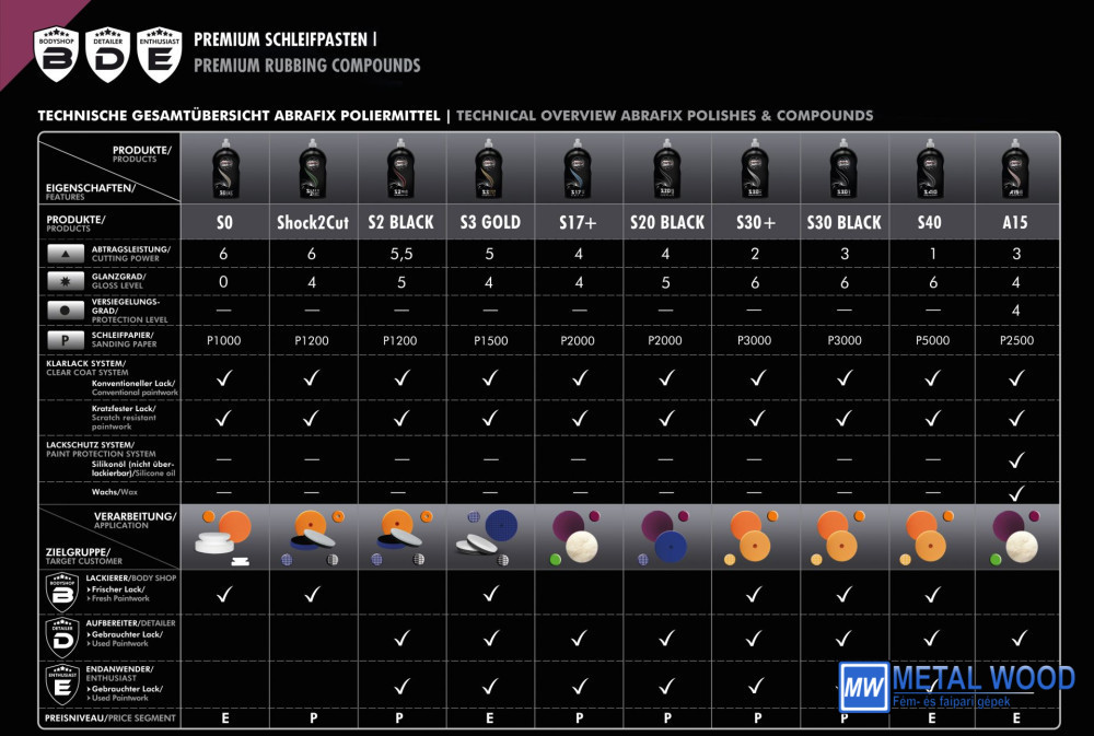 Az S0 egy „folyékony csiszolópapír”. A paszta tökéletes mattításhoz és turmixolás előtti előkészítéshez. Ezen kívül a rendkívül mély karcolások és festékirritációk (narancsbőr) optimálisan kicsiszolhatók.