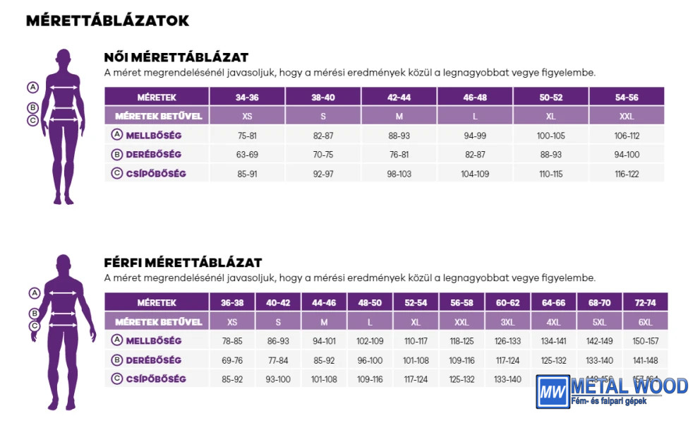 Méretek: S, M, L, XL, 2XL, 3XL, 4XL, 5XL