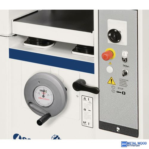 A vastagságtáblázat beállítása a beállított gyalulási magassághoz (1/10 mm pontosságú) számkijelzővel ellátott kézikerékkel történik.