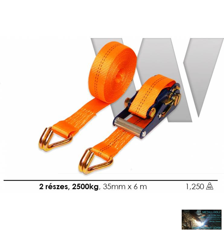 WKR-Rakományrögzítő csúcsos horoggal, két részes, 6mx35mm 2500kg-ig, narancssárga